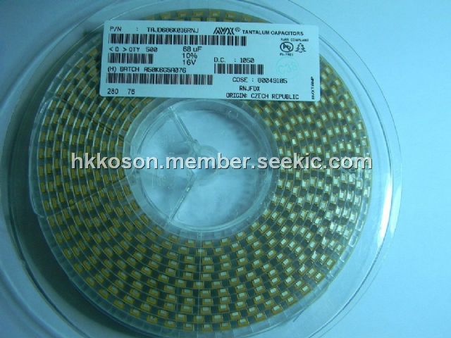 TAJD686K016RNJ features: (1)General purpose SMT chip tantalum series; (2)6 case sizes available; (3)Low profile options available; (4)CV range: 0.10-2200μF / 2.5-50V.